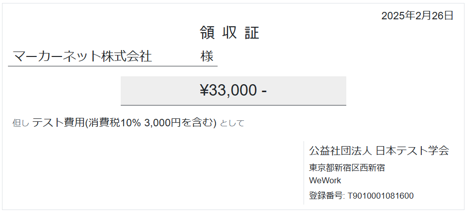 リードテキストに記載したテキストが、領収証の枠外に表示されます。